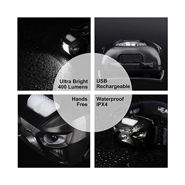 APUNOL 2 Pacchi Lampada Testa LED Ricaricabile, Torcia Frontale USB e Impermeabile con 200 Lumens, 8 modalità di Luce Bianca e Rossa, Sensore di Movimento per Campeggio Escursioni Corsa Sport
