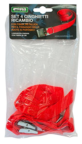 Cora 1068270 Set 4 Chinghietti Ricambio con Fibbia Metallica per Il fissagio delle Ruote ai portabici, Rosso, 38 cm, Set di 4