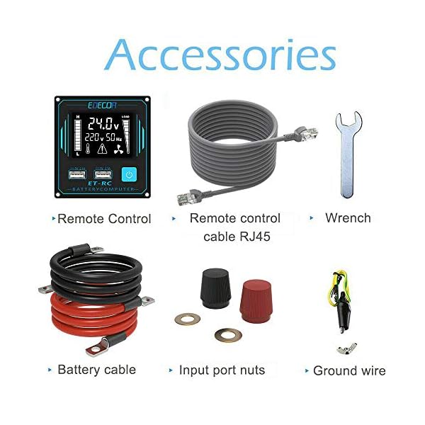 Facile da usare: il convertitore è progettato per viaggi, camper, installazioni di pannelli solari, auto, campeggio, camper, roulotte, barche e lavori all’aria aperta, cioè per collegare dispositivi a 220v senza linea di alimentazione. Ideale per installazioni isolate o indipendenti dalla rete (off-grid). Include anche i cavi per l’installazione e alcuni terminali che garantiscono la sicurezza dell’installazione