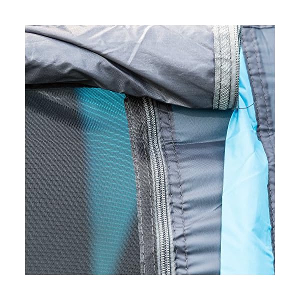 Facilissima da montare, la tenda è stabile grazie alle aste infrangibili in fibra di vetro. Le cuciture sigillate impermeabili e la colonna d’acqua di 2000 mm la rendono molto resistente alle intemperie.
