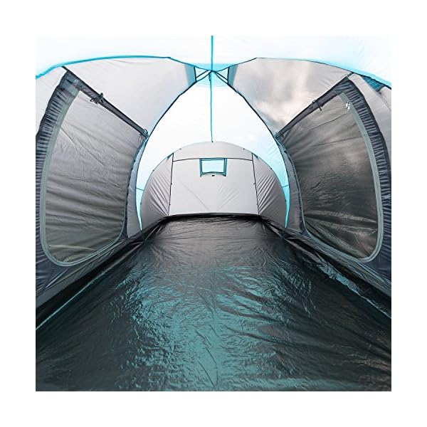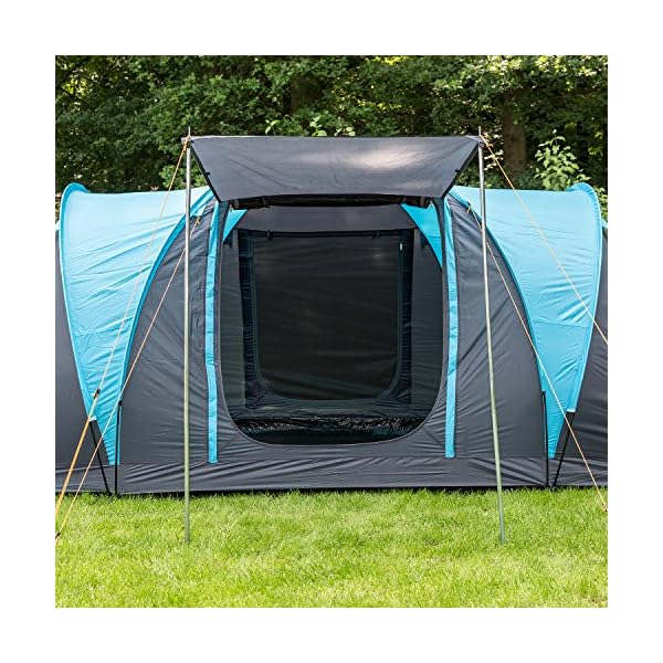 Tenda famigliare per 4 persone, con una comoda altezza di 200 cm, molto spazio nell’area abitabile, per bagagli e mobili da campeggio, con due cabine interne accoglienti per un sonno riposante.
